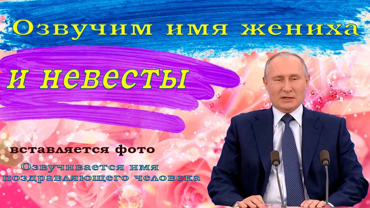 В видео озвучиваются: 1) Имя заказчика или тамады 2) Имя и фамилия жениха 3) Имя невесты 4) Фото отправлять после заказа на обратный эл. адрес